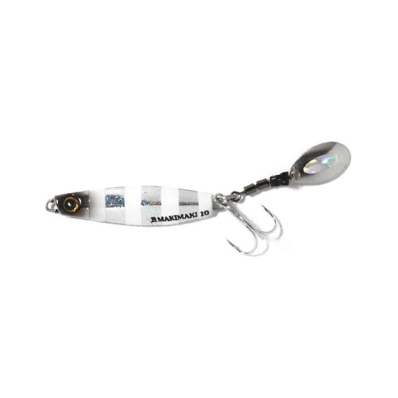 Le Jackeye name Makimaki est un petit casting jig destiné aux pêches légères du bord de mer ou de la perche en eau douce. Il se compose de deux cotés asymétriques, une face étant plate alors que l’autre est bombée. Ultra dense, il se lance très bien et grâce à sa palette, il est pêchant aussi bien à la descente qu’en linéaire. Il est équipé d’origine avec un hameçon triple en queue et une palette montée sur un émérillon rolling triple avec deux revêtements holographiques positionnés à l’intérieur et à l’extérieur; pour des signaux lumineux encore plus attractifs.